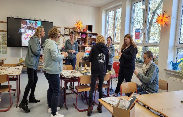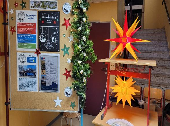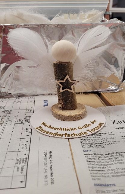 Mit einer tollen Bastelaktion war die Zinzendorfschule in diesem Jahr auf dem Winterbasar vertreten. Die engagierten Elternvertreterinnen Tina Wobschall, Lisa Hagemann, Birgit Schiwy, Meike Harbers-Bahr, Marina Grimm und Miriam Keller bastelten mit den Grunschulkindern Engel, Tannenbäume und Häuschen in einem weihnachtlich geschmückten Klassenraum. Durch weihnachtlich dekorierten Stand machte die Schule Werbung und es konnten Gespräche mit der neuen Schulleitung B. Maibaum und D. Kittel sowie dem Fördervereinsvorsitzenden Eike Hessenius geführt werden.